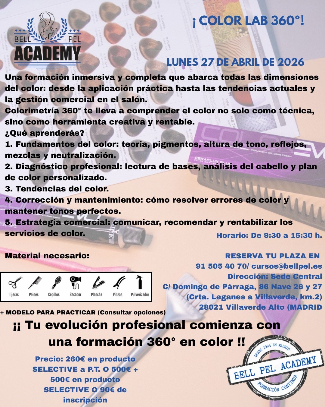Una formación inmersiva y completa que abarca todas las dimensiones del color: desde la aplicación práctica hasta las tendencias actuales y la gestión comercial en el salón.