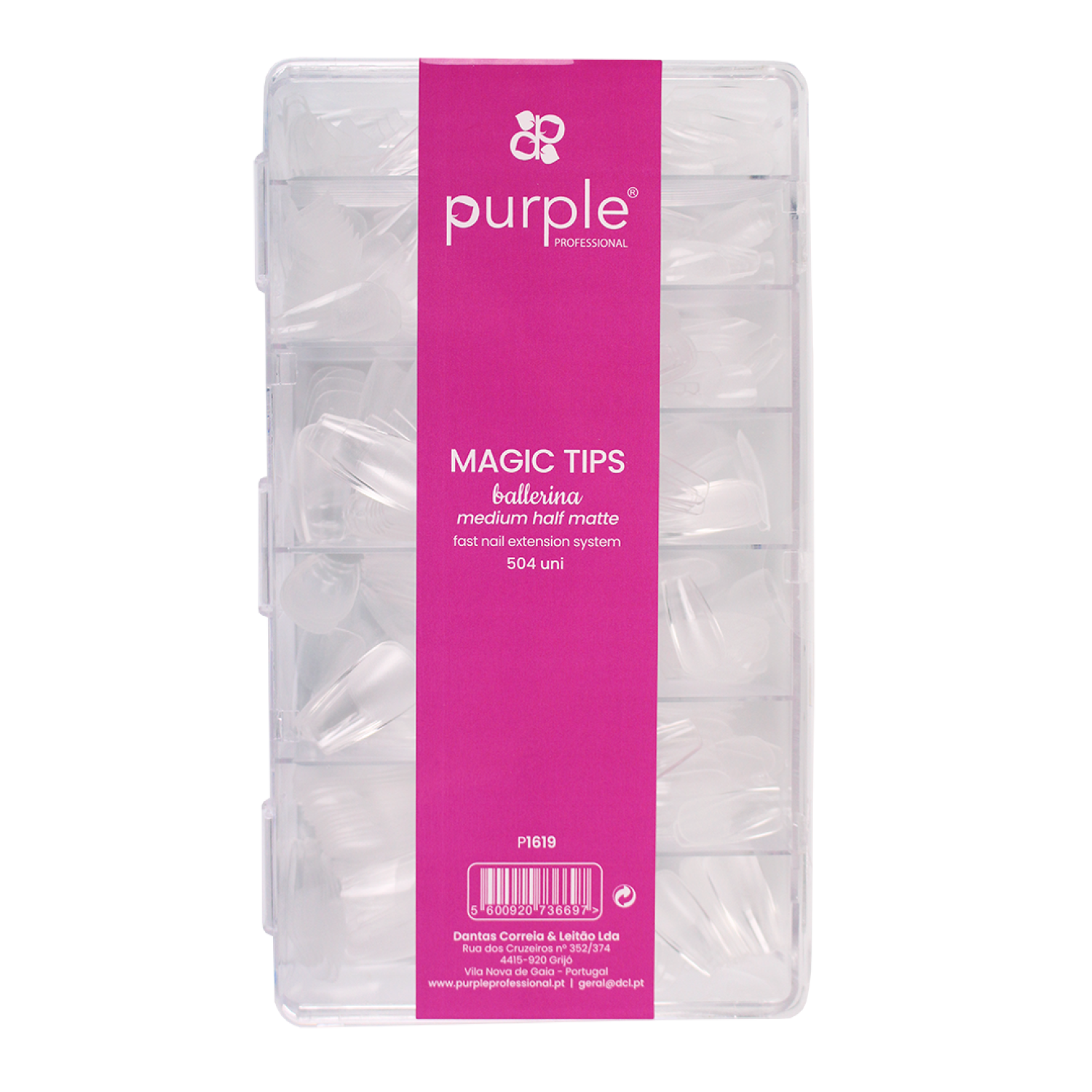 Caja con 504 tips de diferentes medidas. Tips transparentes.Se colocan lo más cerca de la cutícula que sea posible, facilitando así la construcción de la uña.